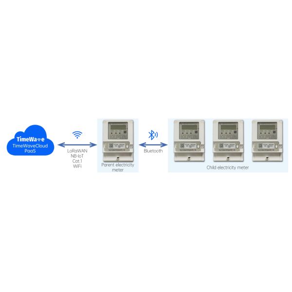 The single-phase IoT Bluetooth child meters and parent meter exchange data wirelessly via Bluetooth. The transmitted data contains relevant information for the corresponding receiving meters, which are processed after comparing the information. This solution is suitable for situations where energy meters are installed densely, eliminating the need for RS485 wiring and making the overall deployment more convenient and cost-effective.